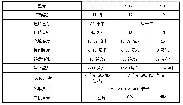 2:壓片時轉盤的速度、物料的充填深度、壓片厚度均可調節。