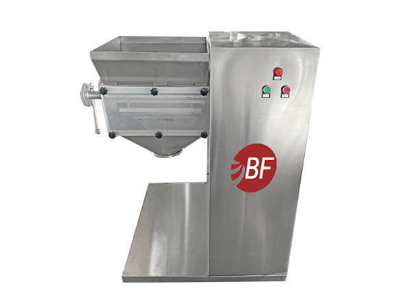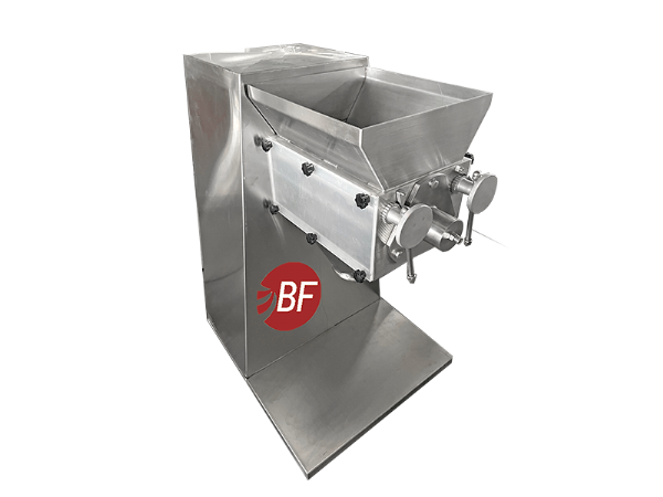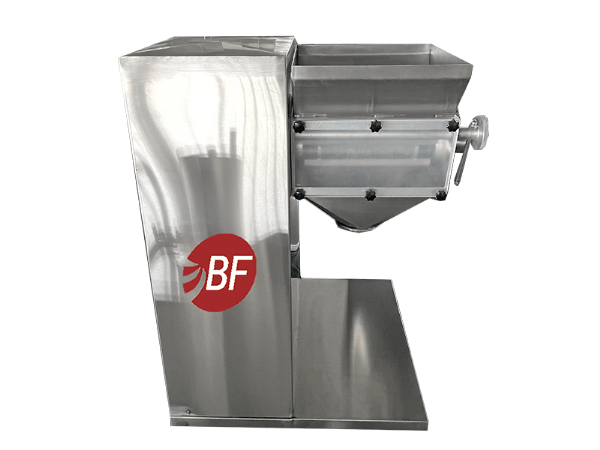 搖擺式顆粒機運行時,加料理和篩網位置的松緊直接影響制得顆粒的質量。加料斗中加料量多而篩網夾得比較松時,由于滾筒旋轉時能增加軟材通過篩網的次數,均能使得的顆粒堅硬。