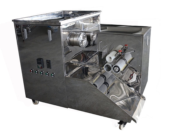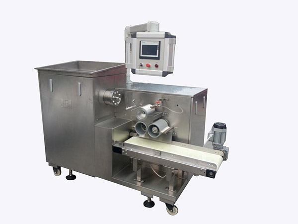 將混合均勻的藥料投入到料斗內(nèi),通過進藥腔的壓藥翻板在螺旋推進器的擠壓下推出6-8條相同直徑的藥條。在自控導(dǎo)輪的控制下同步進入切藥搓動的工作過程后,連續(xù)制成大小均勻的濃縮丸(水丸)。