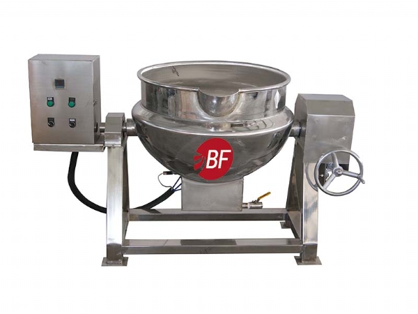 可傾反應鍋可蒸、煮、浸提、濃縮藥材,也可用于制作蜜丸中的煉蜜。可傾反應鍋由主體、支架、蝸輪、蝸桿等組成。夾層通入蒸汽加熱,或者使用電加熱。